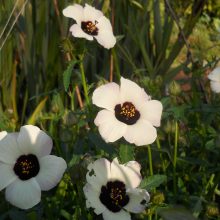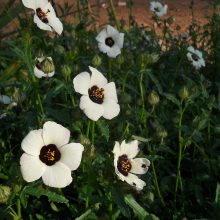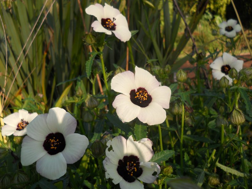 El hibiscus trionum es una herbácea anual muy llamativa para el frente de un cantero. Originaria del este del mediterráneo, tiene flores grandes y delicadas de colores contrastantes. Atrae mariposas y abejas, tolera el poco riego y prefiere el pleno sol.