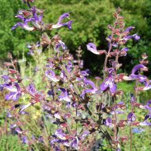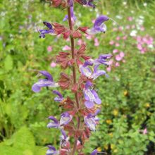 También llamada salvia de los balcanes por su lugar de origen, (aunque se encuentra desd Turquía hasta en Arabia Saudita) salvia de roseta basal de follaje agraciado que forma una roseta de unos 60 centímetros de diámetro o por ahí un poco más. En primavera largas varas forman un candelabro de flores violetas con blanco. La poda de las varas secas consigue que la roseta se rejuvenezca y que en otoño tenga una segunda floración.