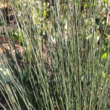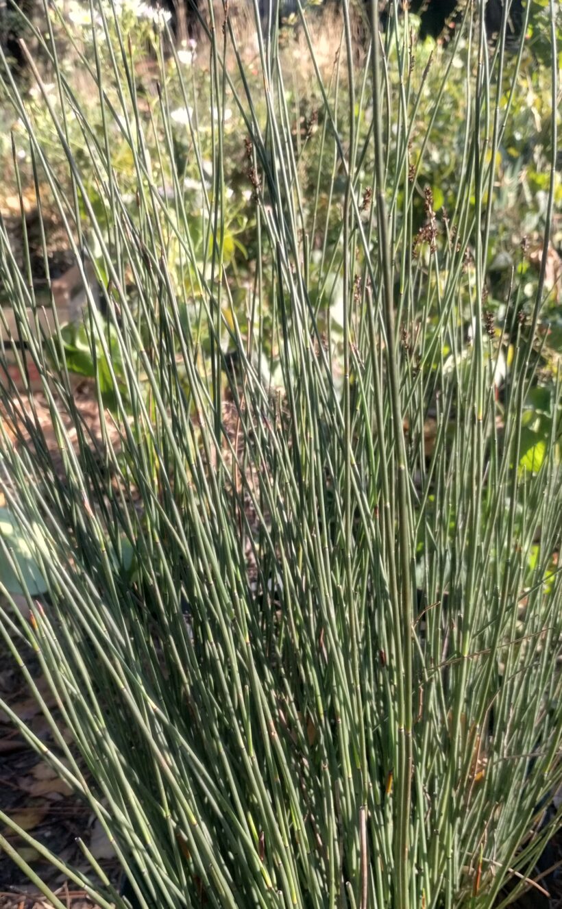 Parece un junco, pero no lo es. Parece un equisetum, pero no lo es. Solo el tiempo, porque crece lento, deja expresar la magnifíca arquitectura de esta planta tan utilizada en gran parte del mundo. Flores amarronadas con un dejo bordó, pero sobre todo, una escultura verde.
