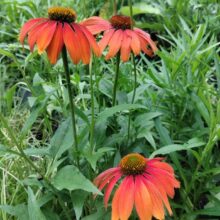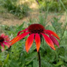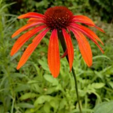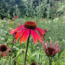 La echinacea es una maravillosa herbácea perenne, longeva, que llega a su madurez a partir del segundo año. En invierno suele desaparecer, para empezar a crecer rápidamente con los calores de octubre. Florece a fines del verano y gran parte del otoño. Planta nectarífera, alimento para todo tipo de mariposas, sus flores secas son sumamente ornamentales además de alimento para aves. Los cultivares seleccionados son de un inusual color rojo que a medida que las flores envejecen se va tornando rosa pastel.