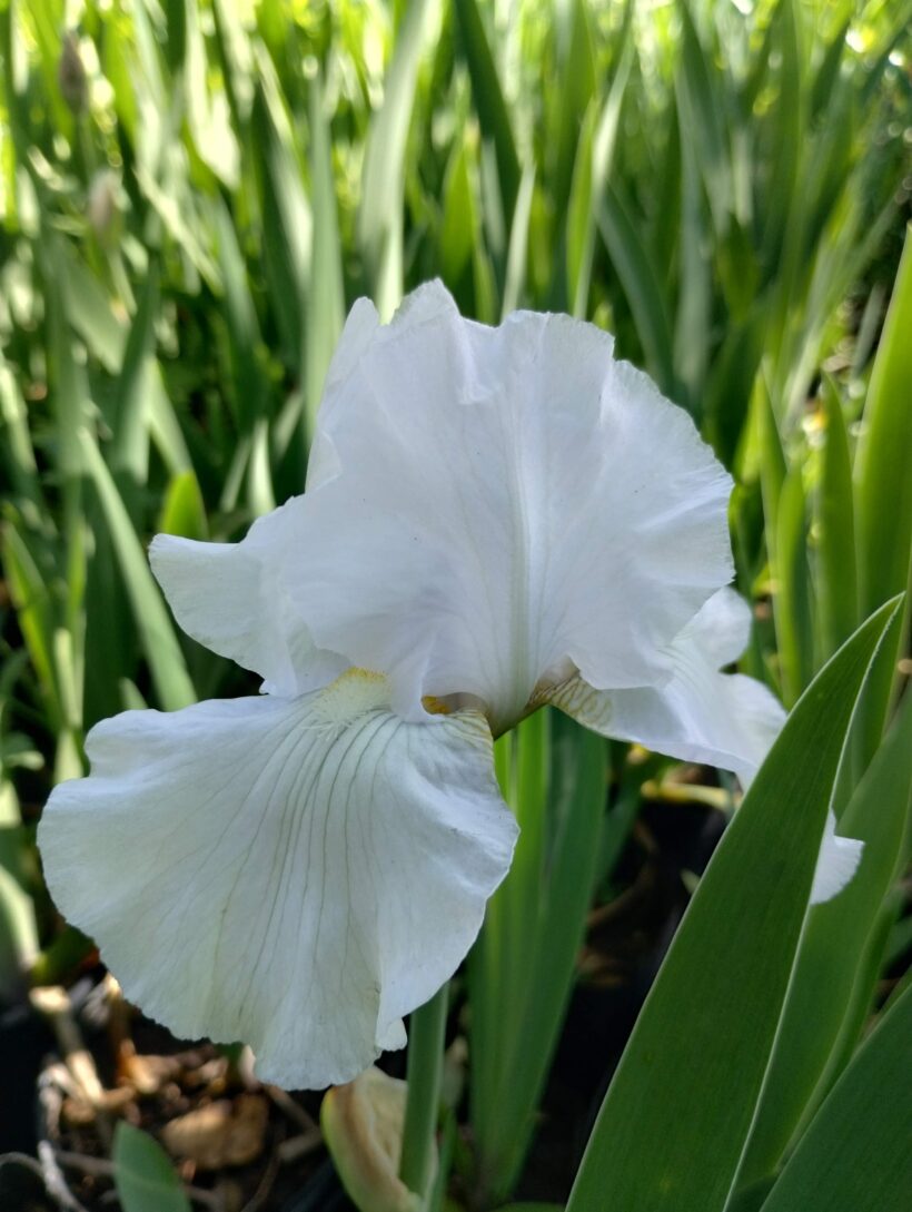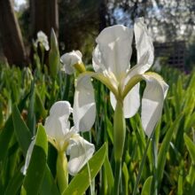 El iris barbado o iris x germánica (híbrido natural entre iris pállida e iris variegata) es una planta que para prosperar necesita condiciones díficiles de darle en los años lluviosos. (requiere suelo poco húmedo, en caso contrario los rizomas se pudren). Pero que vale bien la pena el esfuerzo. En primer lugar, sus maravillosas flores despiertan fanatismos patólogicos. En segundo lugar, florece poco, pero cómo y cuando florece!. Son veinte días, tres semanas, pero cuando el jardín arranca en primavera y los ojos buscan ávidos cada nueva flor. En tercer lugar el follaje invernal, distinguido, fuerte, que contrasta fuertemente con el follaje que se va desluciendo de las salvias. Prefiere tener buen sol en invierno y primavera. En verano agradece algo de sombra.