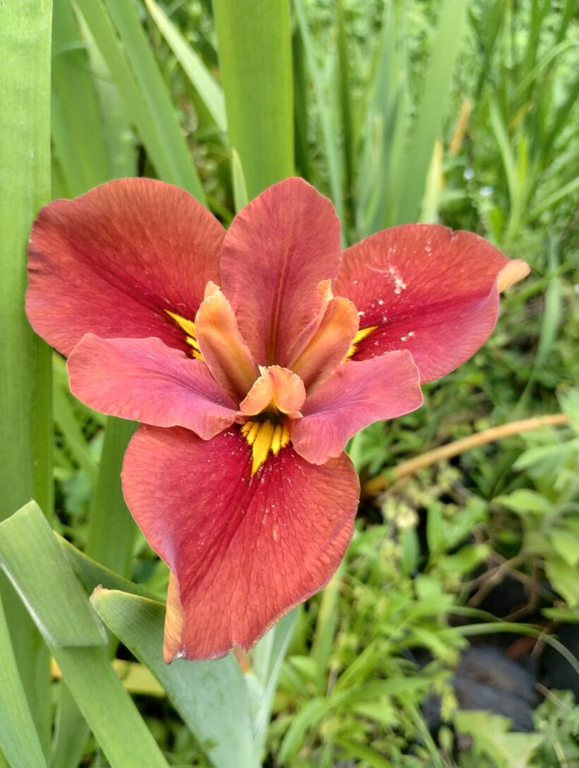 iris lousiana (lirio tonos rojos; ann chowning, Charlie)
