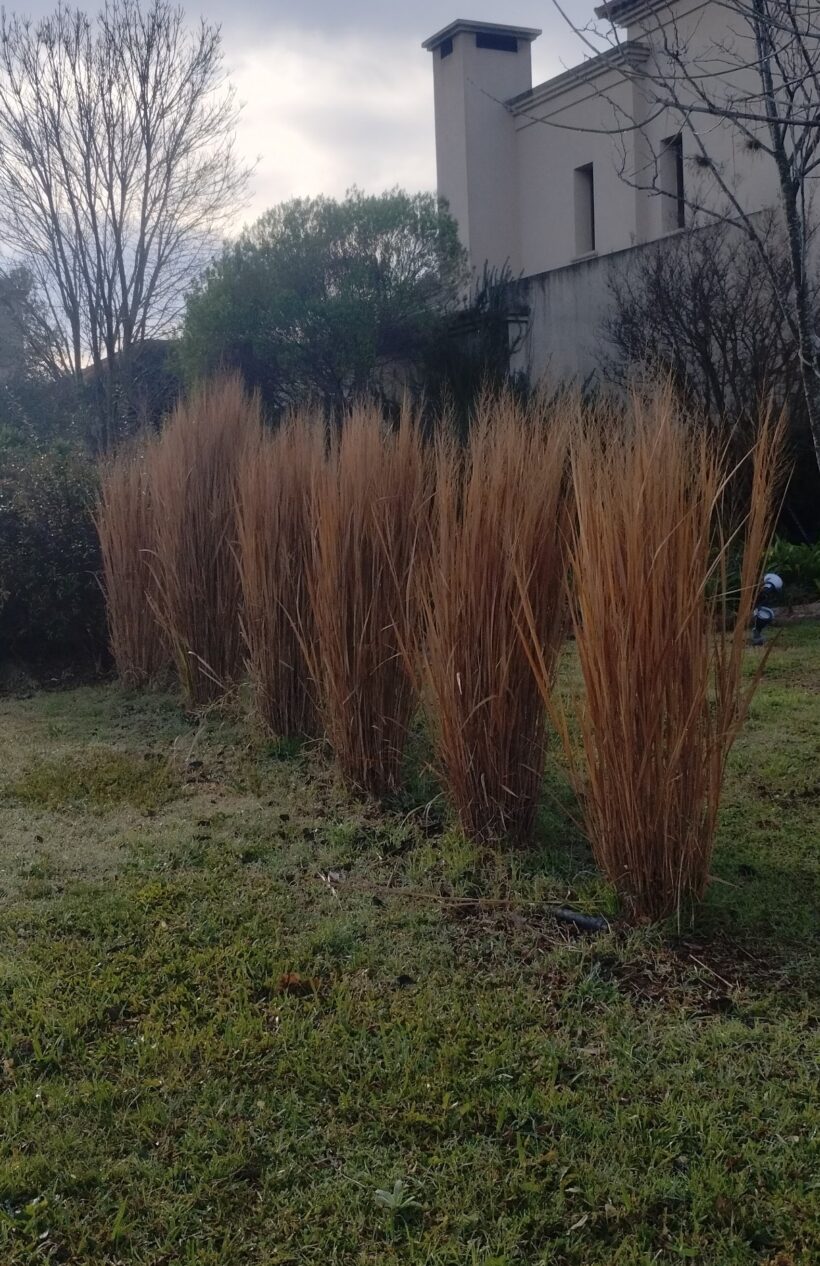 espléndido cultivar de Panicum Virgatum de porte netamente vertical, casí una escultura viva, que vira al ocre con tonos naranjas a finales del otoño.