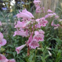 Penstemon florífero y resistente. Con sus hojas pequeñas y alargadas forma una mata verde brillante que se mantiene en invierno. Su floración rosa pálido combina excelente con los púrpuras y los lilas.