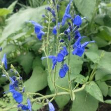 en los jardines a veces ocurren maravillas. en el jardín de Betsy Clebsch al tener tantas salvias la naturaleza la tiene más fácil. la salvia Big Swing es un híbrido entre la peruana s. Macrophylla (Tingo blue es el cultivar más conocido de ella), y la ecuatoriana s. sagitata. Big Swing tiene presencia. casi un metro de alto por apenas menos de ancho. recontrafloribunda. en zonas protegidas sobrevive a las heladas. a campo no sabemos.