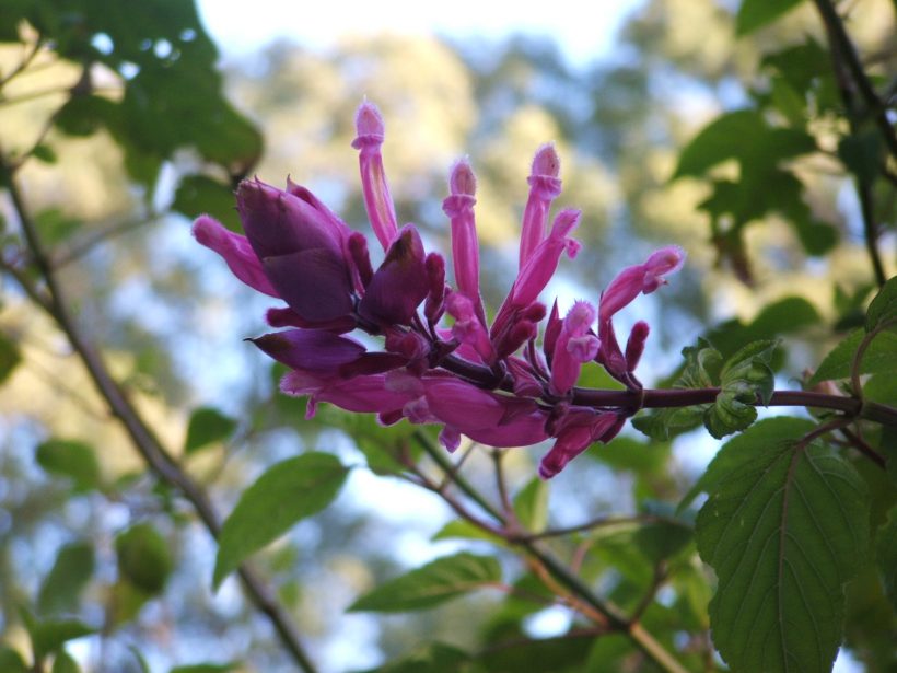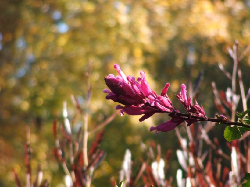 La exuberancia en otoño. Flores enormes, involucrata doble le dicen algunos. Flores tan grandes que los largos tallos se arquean tratando de sostenerlas. Una gigante que supera los dos metros, salvia involucrata desaparece en invierno, rebrota en primavera, crece, crece, y florece en otoño hasta que las heladas dicen c´est fini.