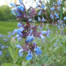 Bueno, he aquí LA SALVIA. Cultivada por los romanos, descrita por Plinio el viejo, a la que debe el nombre un género completo con miles de plantas e híbridos. Cultivada como aromática, es una planta de alto valor ornamental, pero no tanto en Buenos Aires. De clima mediterráneo, no le gusta el invierno húmedo, y si sobrevive, lo hace bastante mal. Ideal para clima costero, o patagónico, no tiene problemas con las heladas.