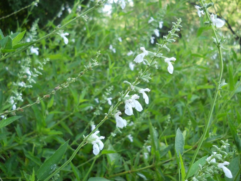La salvia pállida crece en Entre Ríos formando densas matas que en verano se repletan de espigas blancas. Le gusta el riego pero tolera bien la sequía. Acá en Buenos Aires, no tiene ningún problema con las heladas, y en inviernos tenues no pierde la hoja. Una planta sumamente versátil y resistente, que aman las abejas y mariposas.