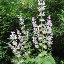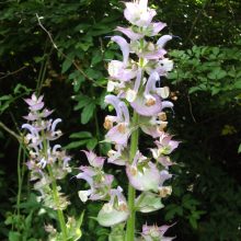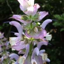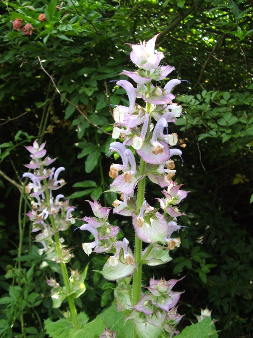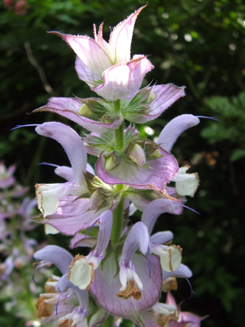 Impactante salvia bianual, que se resiembra con facilidad.  Roseta basal de sesenta centímetros, y una floración que no puede pasar inadvertida. Prefiere el clima seco, y en Buenos Aires, el lugar más seco del jardín. No tiene problema con las heladas. Pleno sol. De amplio uso medicinal.