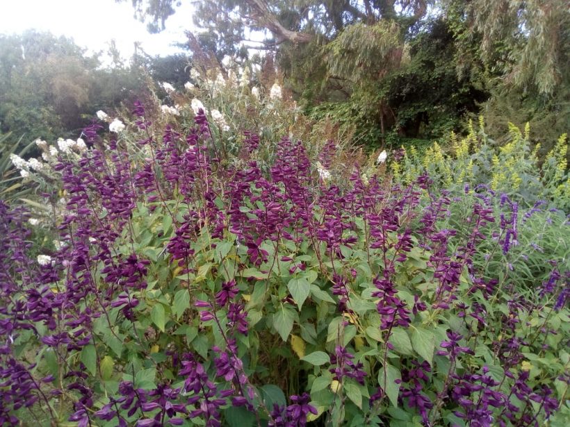 Si la salvia Van Houttei Burgundy es color ladrillo, o malbec, este cultivar Darker es aún más oscuro. La salvia van houttei es un cultivar de salvia splendens, el famoso coralito, que en la naturaleza no es coralito sino Coral, con mayúsuculas, un arbusto impactante de más de metro y medio de alto. De origen brasilero, es una herbácea perenne en clima templado (En CABA, y en zonas urbanas), pero acá en Exaltación de la Cruz puede helarse de muerte. Aún así, por el color inusual de sus flores, y por la profusión de ellas, muchos la cultivamos como anual, ocupando un lugar estelar en los canteros.