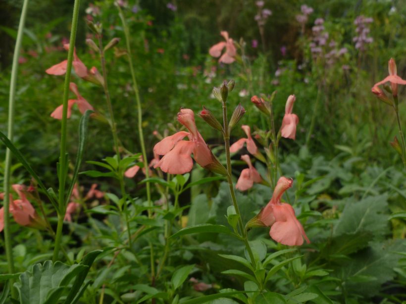 La salvia X Jamensis California Sunset es de las X jamensis (con la gregii Peach quizás), la que más se aproxima a un naranja, al naranja de un atardecer en el desierto. De buen porte y floración abundante cuando tiene buen sol, una poda en verano estimula la floración otoñal y consigue una planta un aspecto más prolijo.