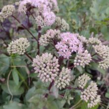 crasas, herbáceas, perennes, maravillosos, los sedum son un clásico de los borders ingleses. en invierno con sus flores secas, en primavera tardía con su crecimiento desaforado (conviene podarlos casi al ras justo antes de navidad para obtener una floración de otoño prolija, y que la planta no se desparrame). ni hablar de su maravillosa floración otoñal, que provee de alimento a todo tipo de mariposas. el sedum matrona empieza a despuntar sus flores en rosa claro para ir tornando a los rosa oscuro a medida que transcurre el otoño. Un cultivar bastante más grande y robusto que el spectabile, que busca su lugar en nuestros jardines.