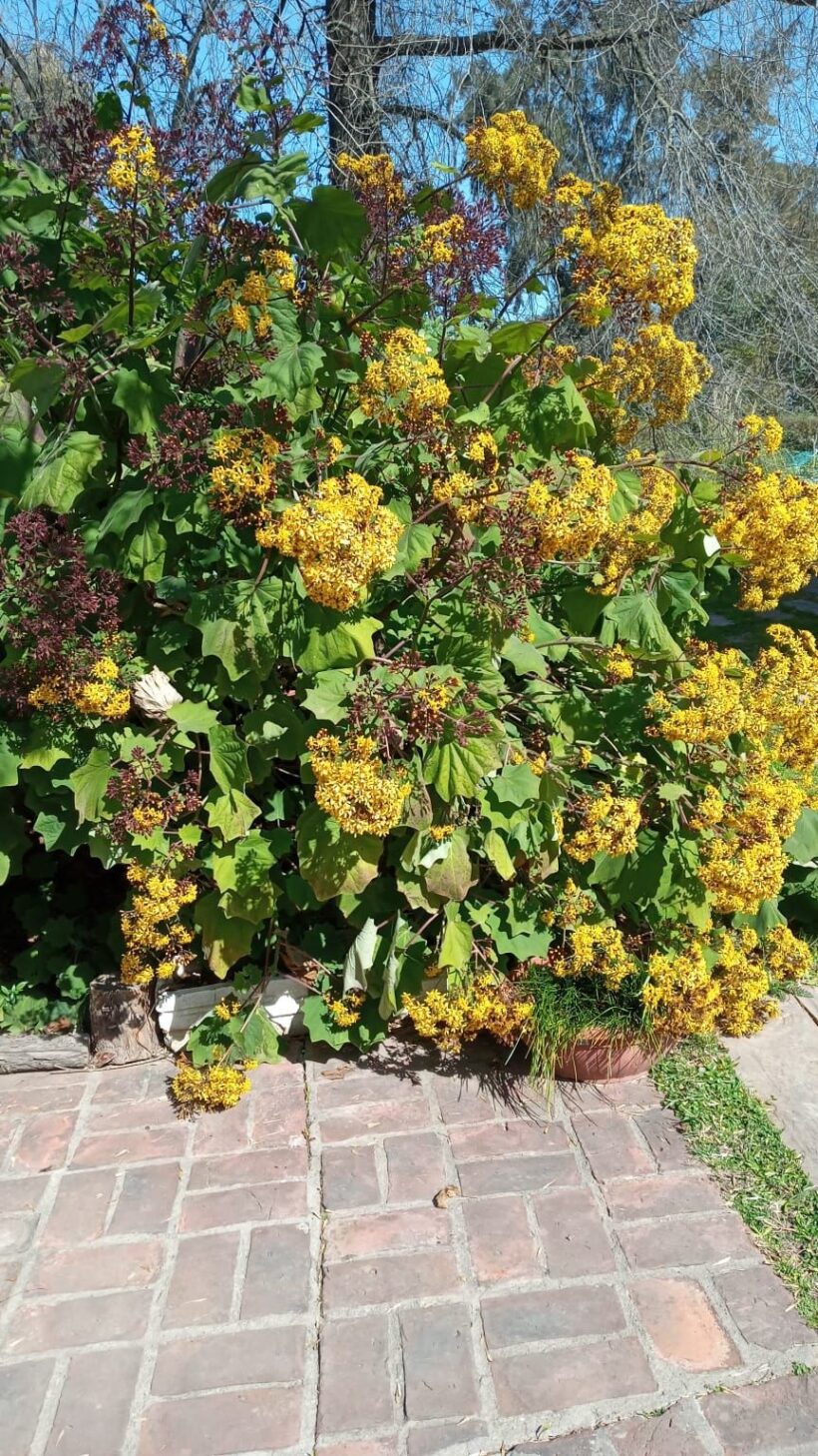 si lo que se quiere es volumen, una planta con follaje maravilloso, que florece en invierno, (los pimpollos son oscuros, bellos, y la floración es amarillisima). Lo único que pide es reparo del sol y las heladas.
